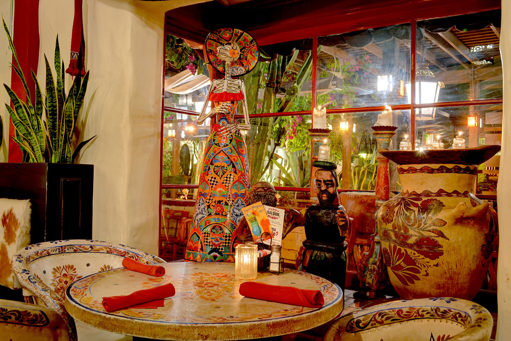 Barra Barra’s furniture and décor provide the ambiance of a ranch home in Old Mexico and include hides and authentic reproduction collectibles and Mexican artifacts. Two indoor dining rooms flank the saloon and provide plenty of space for group events and private parties. The two fire pits and large outdoor chandeliers add warmth and charm to the patio dining area.